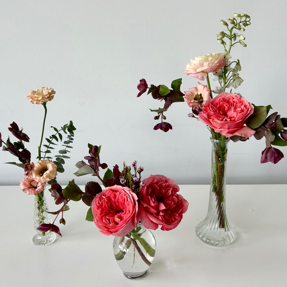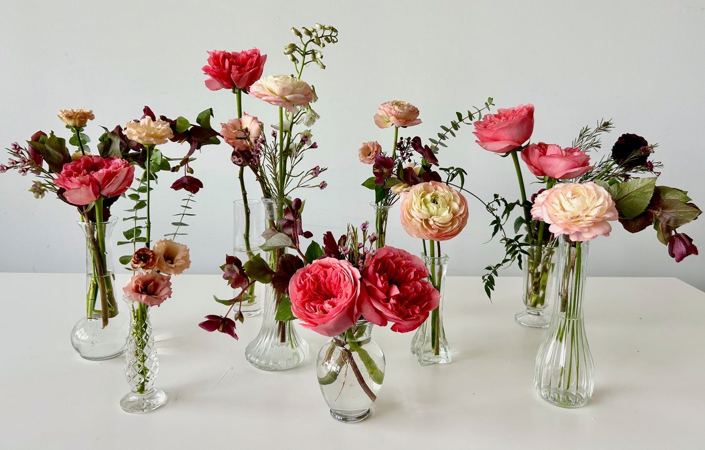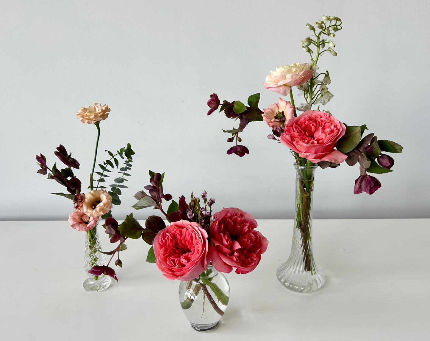 Matching the Gypsy Rose Vase/Bouquet palette, coral, pink, burgundy, blush