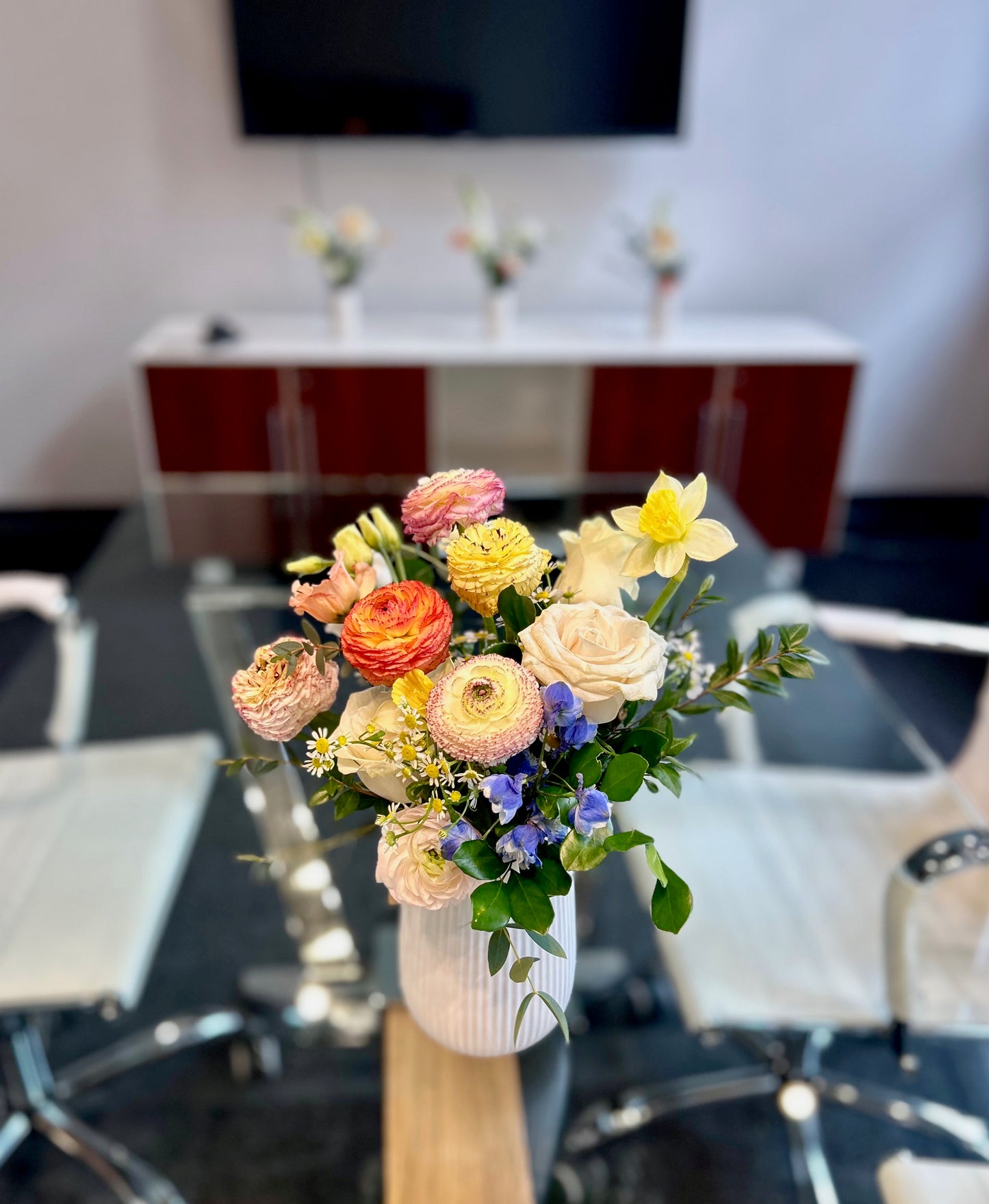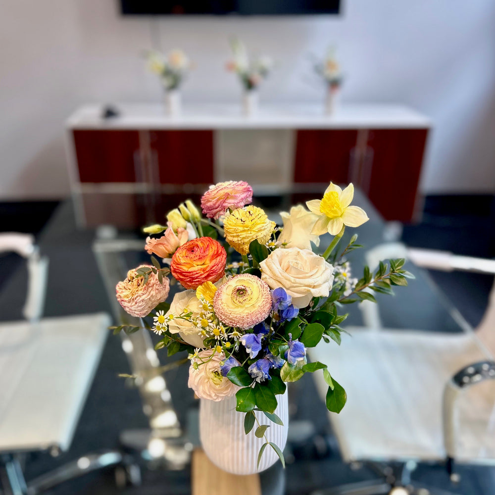 Flourish is Liberty Street Blooms signature corporate floral service, designed to enhance your workspace with fresh professional floral arrangements and plants tailored entirely to your brand.