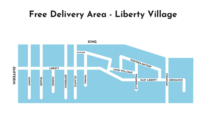 We offer FREE delivery in Liberty Village with a minimum before tax purchase of $85.